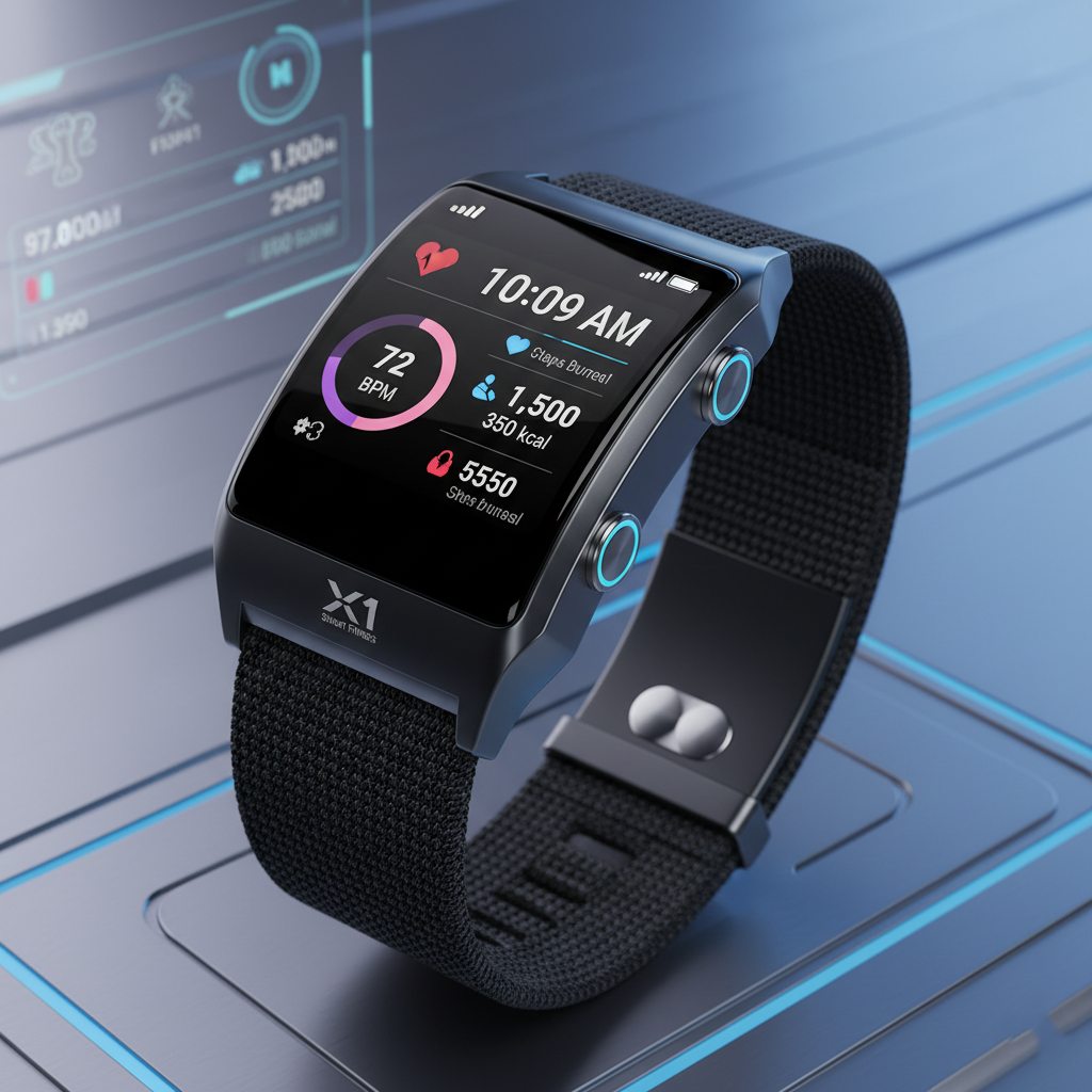 Modern fitness tracker with heart rate monitor and alerts.